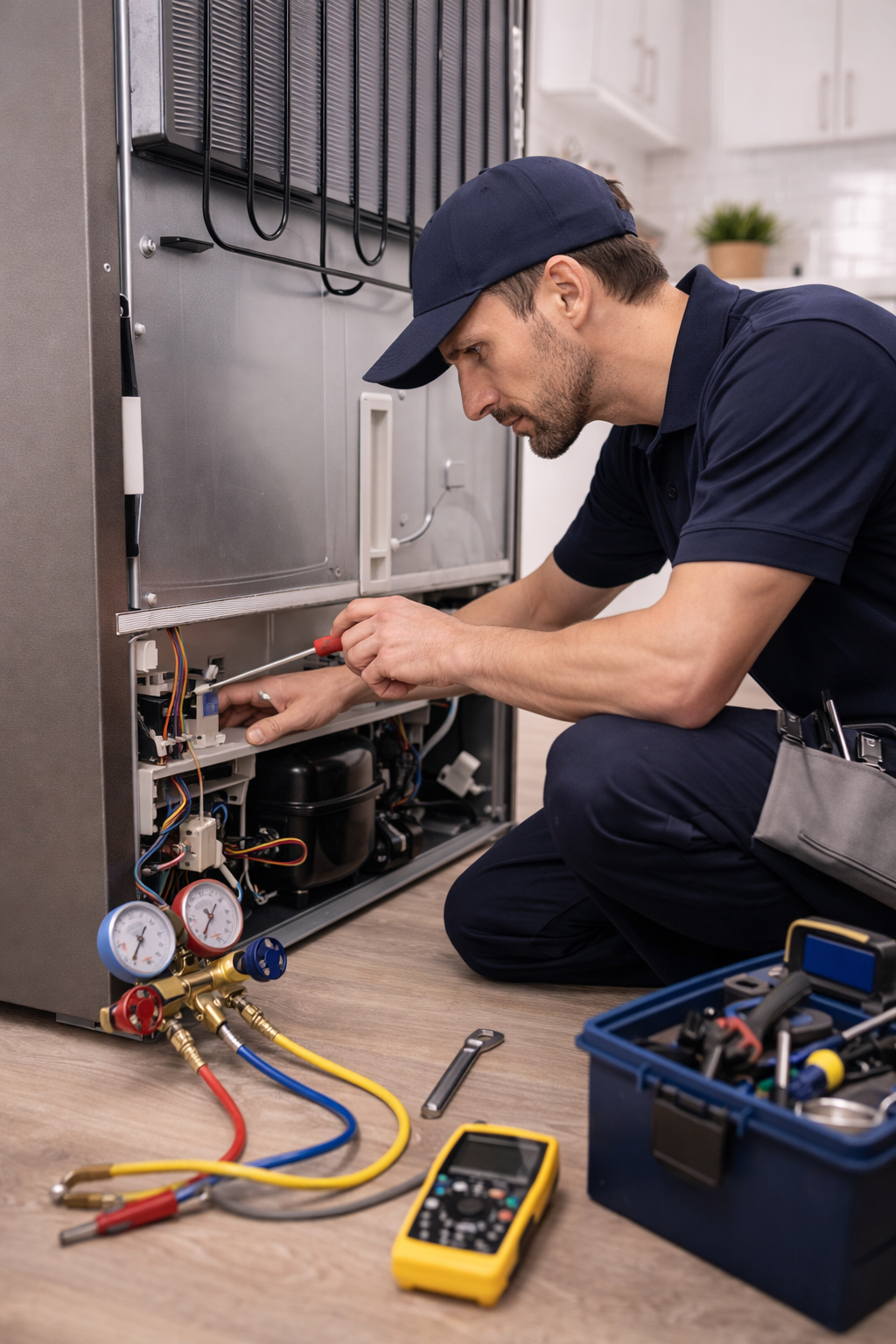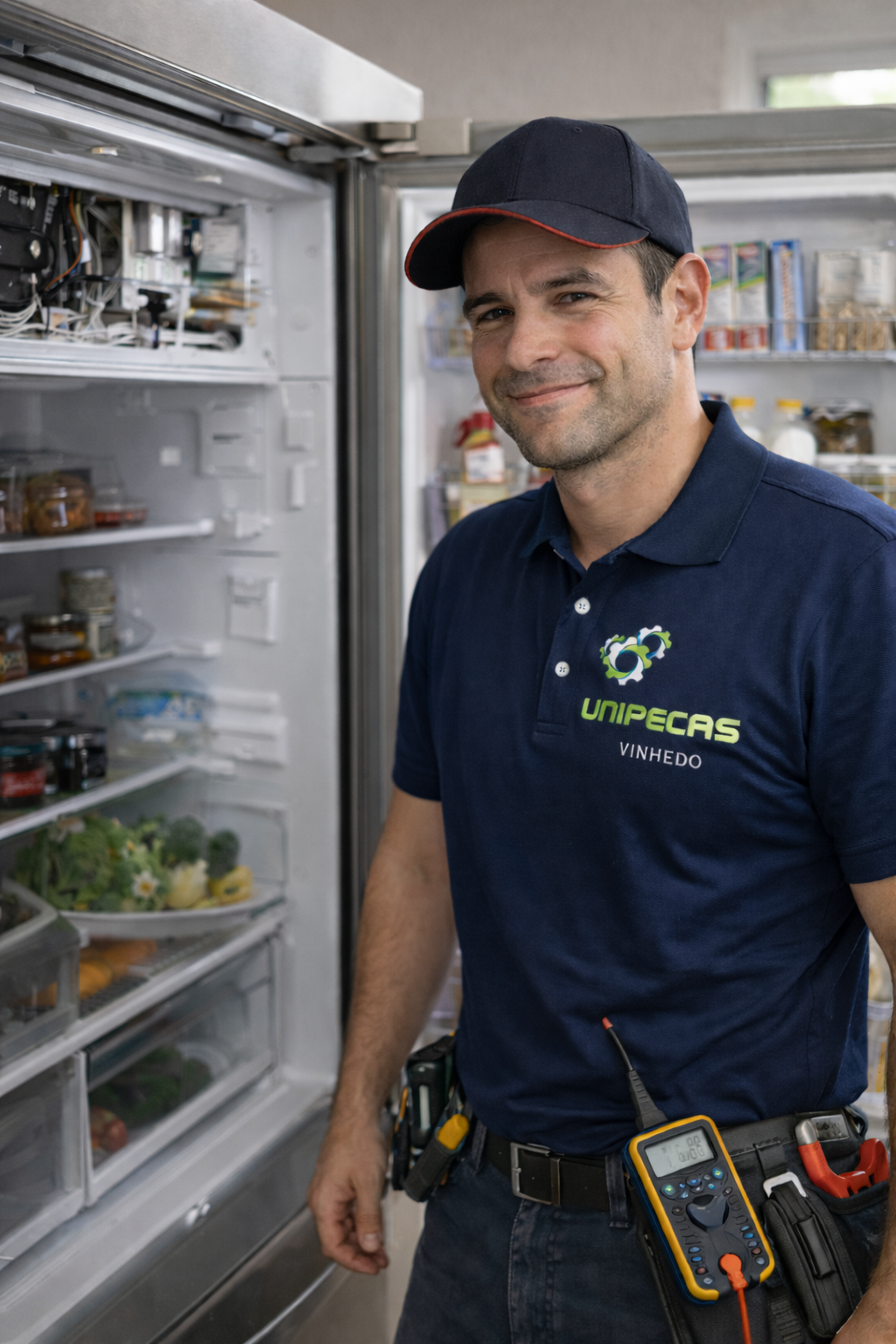 Conte com atendimento rápido e especializado para conserto de geladeiras em Vinhedo. Realizamos diagnóstico preciso e manutenção completa, solucionando problemas como não gelar, vazamentos, barulhos e falhas no funcionamento.